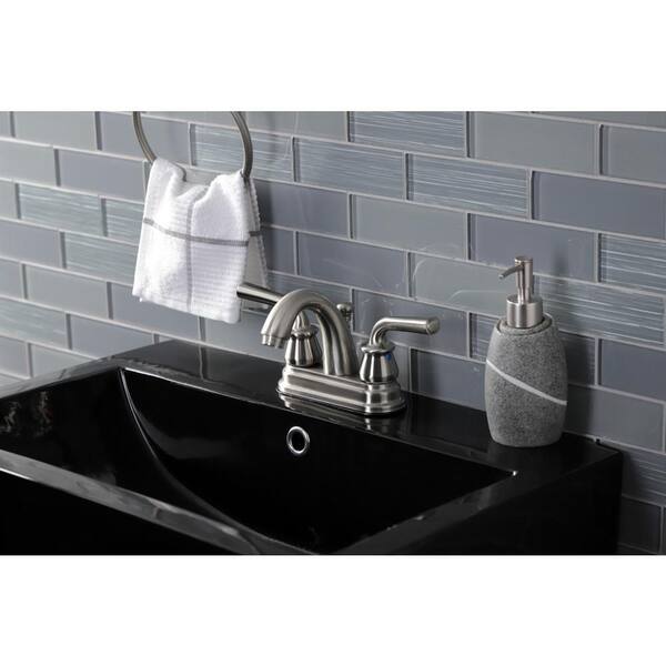 Restoration 4 in. Centerset 2-Handle Bathroom Faucet with Plastic Pop-Up in Brushed Nickel