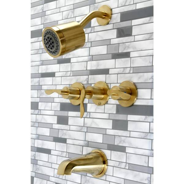 Serena Triple Handle 2-Spray Tub and Shower Faucet 1.8 GPM with Corrosion Resistant in. Brushed Brass