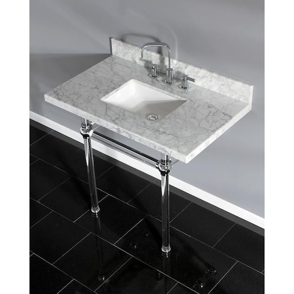 Square-Sink Washstand 36 in. Console Table in Carrara Marble with Acrylic Legs in Polished Chrome