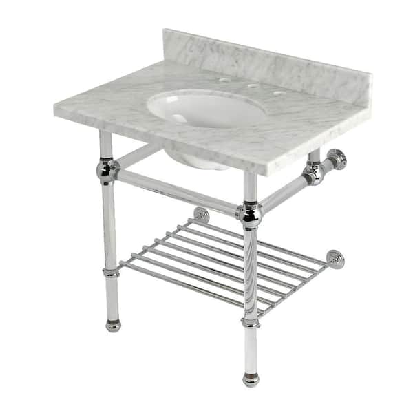 Templeton 30 in. Marble Console Sink with Acrylic Legs in Carrara Marble Polished Chrome