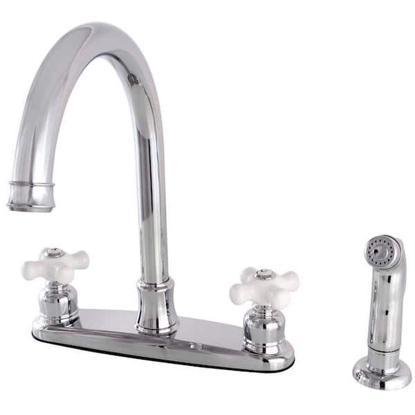 Victorian 2-Handle Deck Mount Centerset Kitchen Faucets with Side Sprayer in Polished Chrome