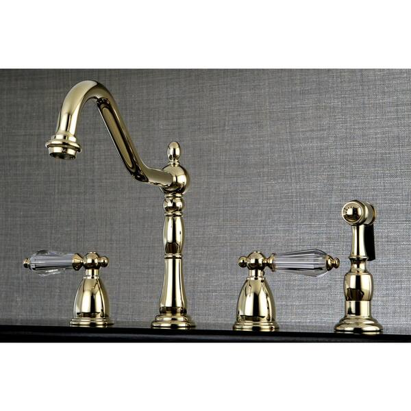 Victorian Crystal 2-Handle Standard Kitchen Faucet with Side Sprayer in Polished Brass