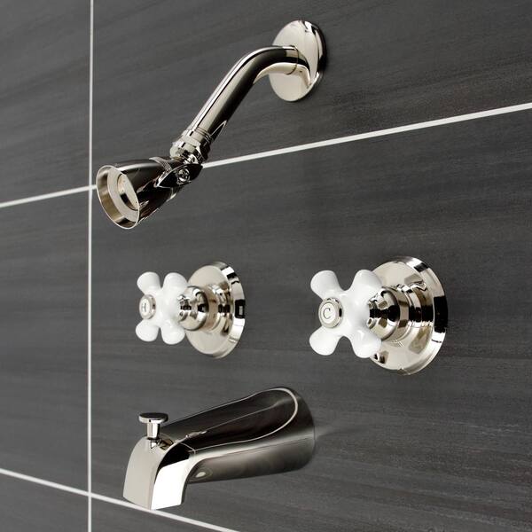 Victorian Double Handle 1-Spray Tub and Shower Faucet 2 GPM in. Polished Nickel (Valve Included)