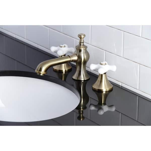 Vintage 2-Handle 8 in. Widespread Bathroom Faucets with Brass Pop-Up in Antique Brass