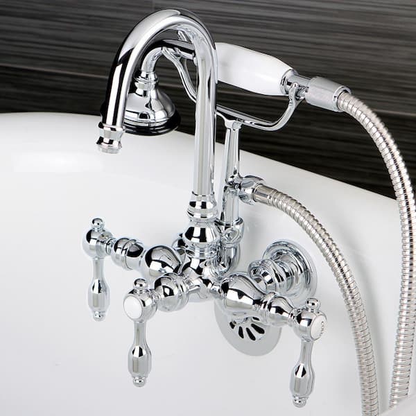 Vintage 3-3/8 in. Center 3-Handle Claw Foot Tub Faucet with Handshower in Chrome