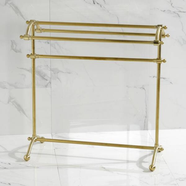 Vintage 4-Bar Freestanding Towel Rack in Brushed Brass