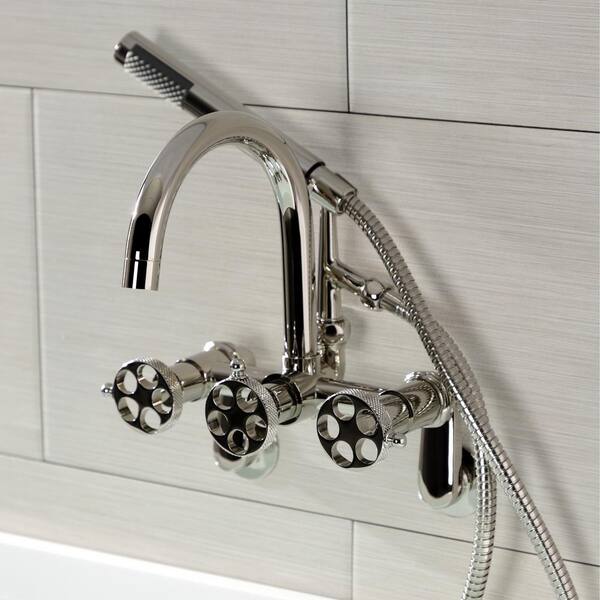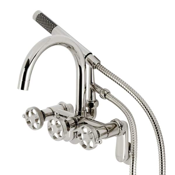 Webb 3-Handle Wall-Mount Clawfoot Tub Faucet with Hand Shower in Polished Nickel
