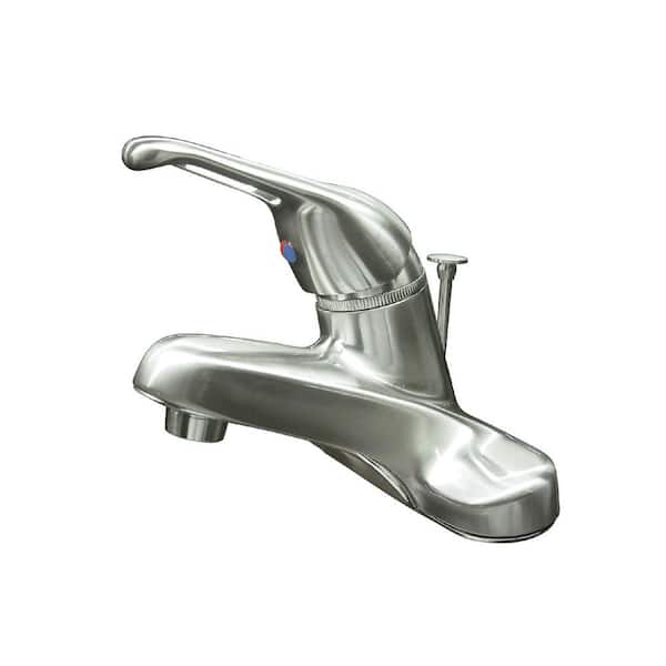 Wyndham 4 in. Centerset Single-Handle Bathroom Faucet with Plastic Pop-Up in Brushed Nickel