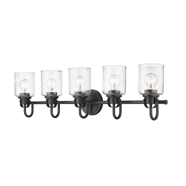 Kinsley 35 in. 5-Light Matte Black Vanity-Light with Clear Seeded Glass Shades