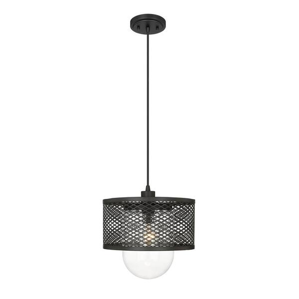 Kipton 11 in. 1-Light Cage Pendant Matte Black with Clear Glass Shade