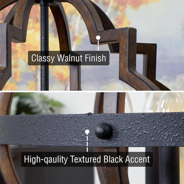 Capistrano 60-Watt 6-Light Textured Black Farmhouse Chandelier with Walnut Style Shade, No Bulb Included