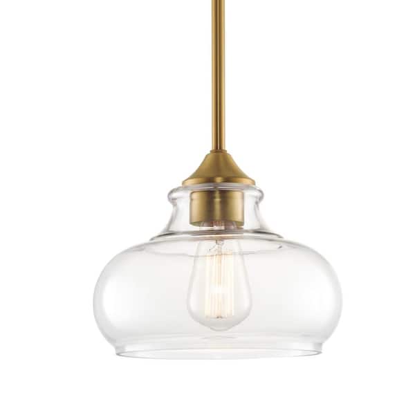 Harlow 60-Watt 1-Light Warm Brass Modern Pendant Light with Clear Shade, No Bulb Included