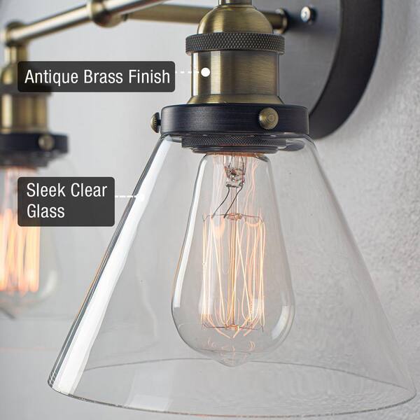 Indie 19 in. 2-Lights Brushed Black and Antique Brass Industrial Bathroom Vanity Light