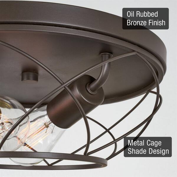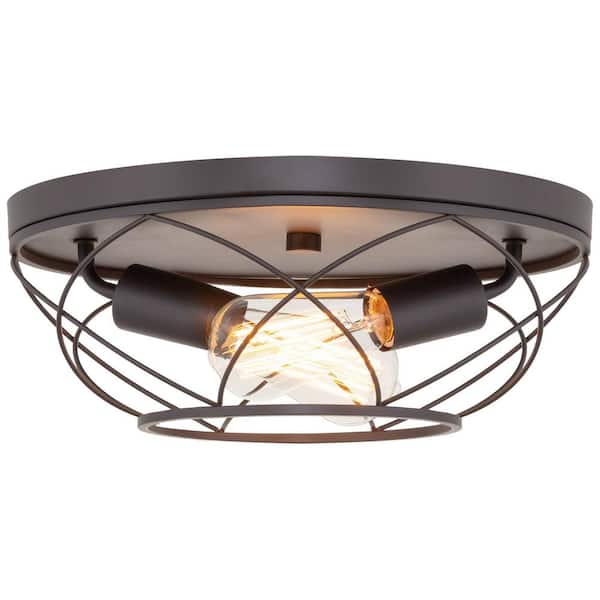 Ivy 13 in. 60-Watt 2-Light Oil-rubbed Bronze Modern Flush Mount with Oil Rubbed Bronze Shade