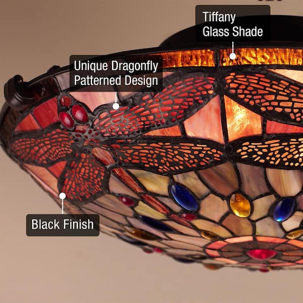 • Modern semi flush with Tiffany glass and dragonfly pattern design