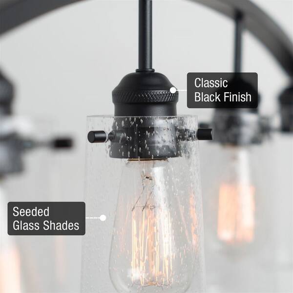 Rayne 60-Watt 4-Light Black Modern Island Pendant Light with Clear Seeded Shade