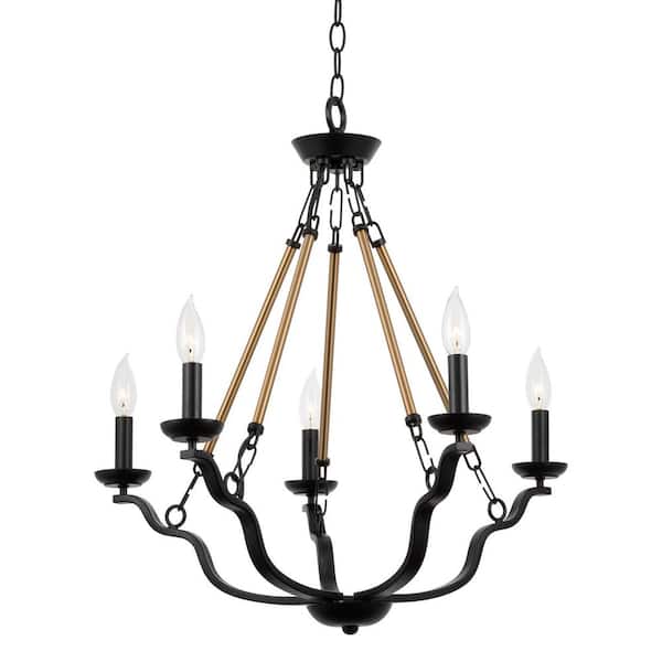 Rochelle 60-Watt 5-Light Black Modern Chandelier, No Bulb Included