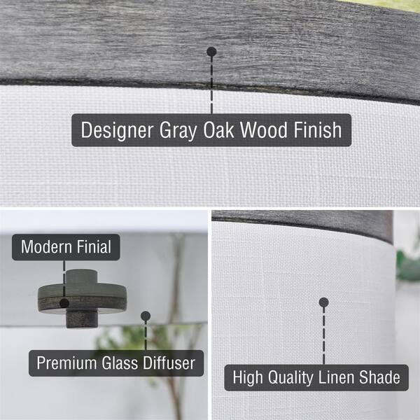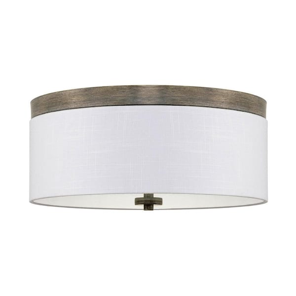 Walker 15 in. 40-Watt 3-Light Gray Oak Wood Style Contemporary Flush Mount with White Shade