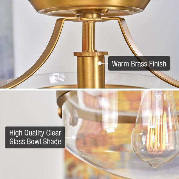 Zurich 12.25 in 60-Watt 1-Light Warm Brass Modern Semi-Flush with Clear Shade, No Bulb Included