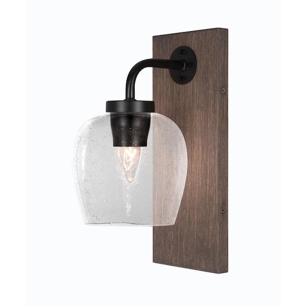 Kirby 1-Light Matte Black and Painted Distressed Wood-look Metal Wall Sconce