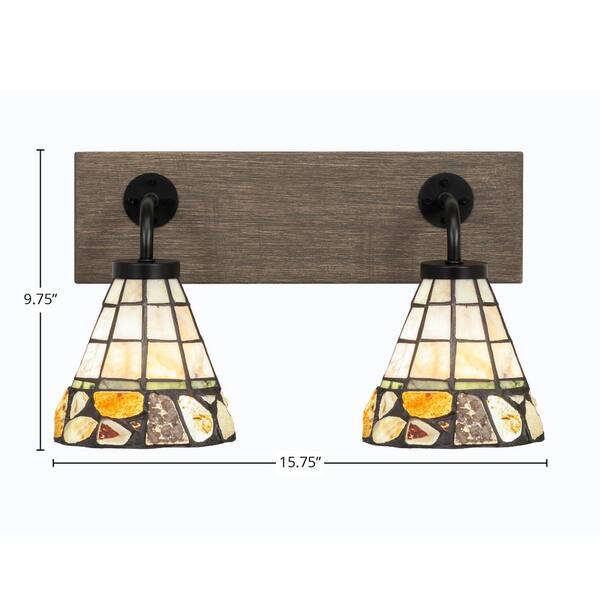 Kirby 15.75 in. 2-Light Matte Black and Painted Distressed Wood-look Metal Vanity Light