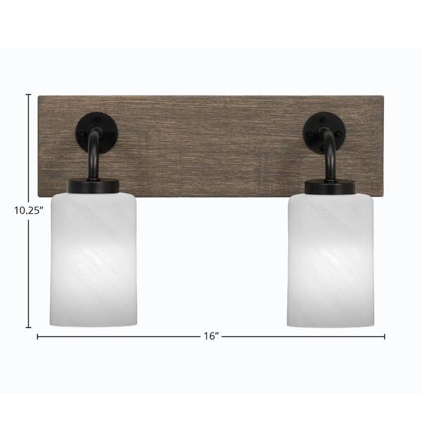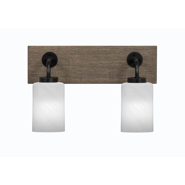 Kirby 16 in. 2-Light Matte Black and Painted Distressed Wood-look Metal Vanity Light