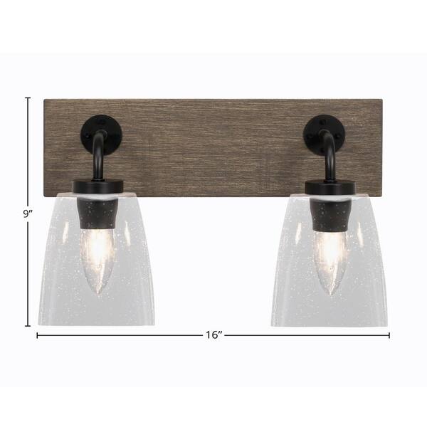 Kirby 16 in. 2-Light Matte Black and Painted Distressed Wood-look Metal Vanity Light