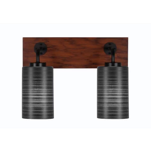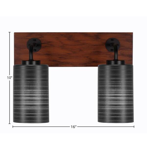 Kirby 16 in. 2-Light Matte Black and Painted Wood-look Metal Vanity Light