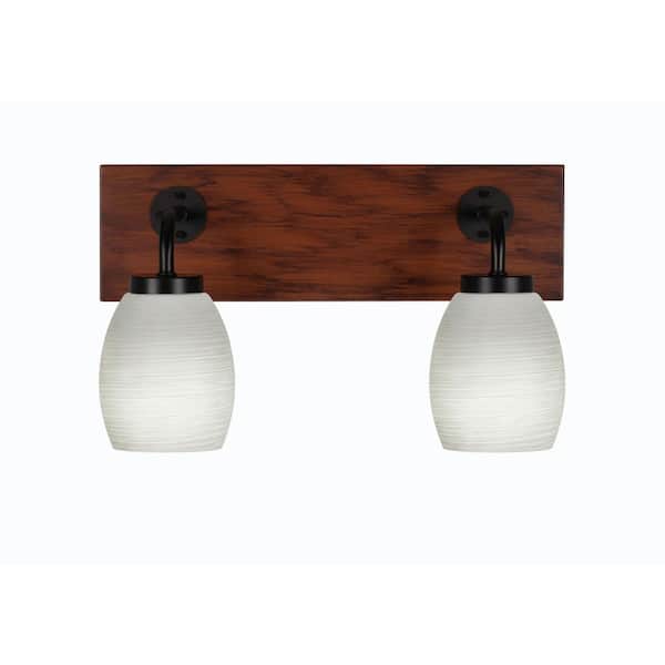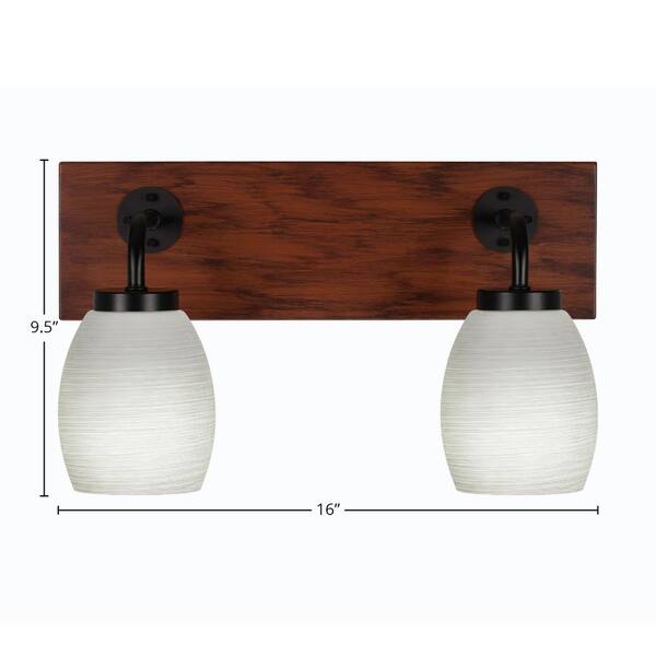 Kirby 16 in. 2-Light Matte Black and Painted Wood-look Metal Vanity Light