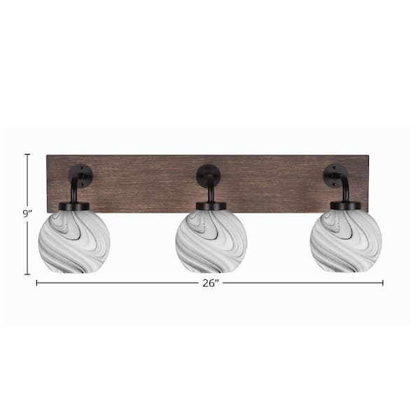 Kirby 26 in. 3-Light Matte Black and Painted Distressed Wood-look Metal Vanity Light