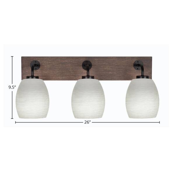 Kirby 26 in. 3-Light Matte Black and Painted Distressed Wood-look Metal Vanity Light