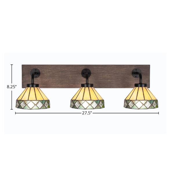 Kirby 27.5 in. 3-Light Matte Black and Painted Distressed Wood-look Metal Vanity Light