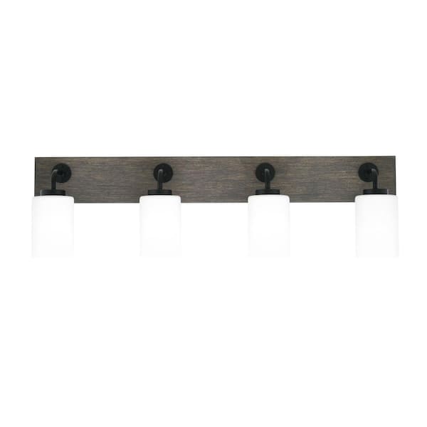 Kirby 36.25 in. 4-Light Matte Black and Painted Distressed Wood-look Metal Vanity Light