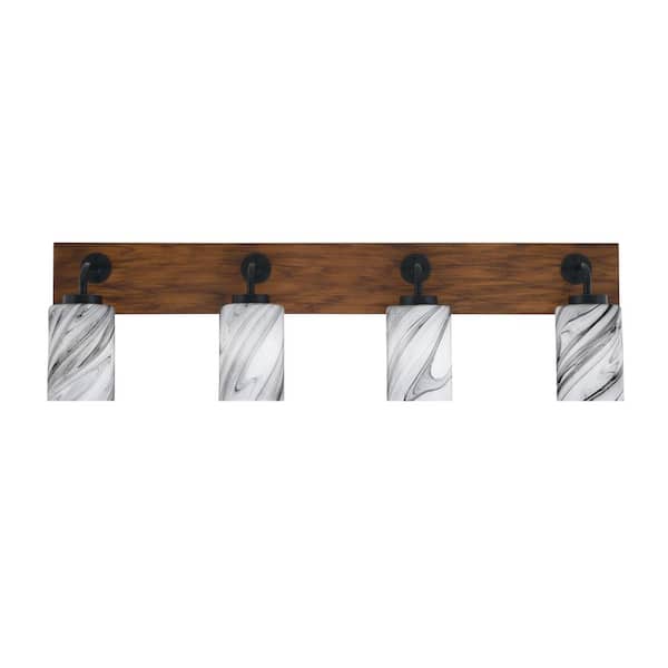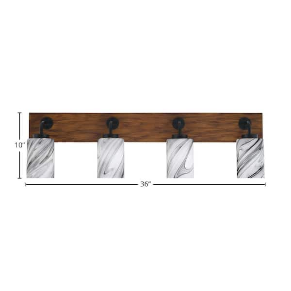Kirby 36 in. 4 Light Black and Painted Wood-look Vanity Light with 4 in. Onyx Swirl Glass Shades No Bulbs Included