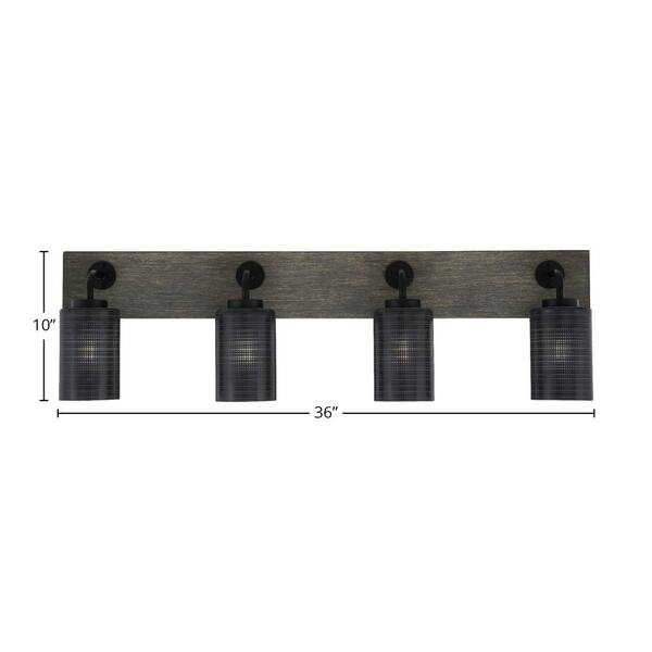 Kirby 36 in. 4-Light Matte Black and Painted Distressed Wood-look Metal Vanity Light