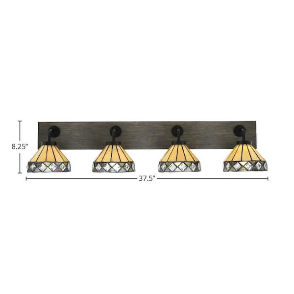 Kirby 37.5 in. 4 Light Black and Painted Wood-look Vanity Light with 7 in. Art Glass Glass Shades No Bulbs Included