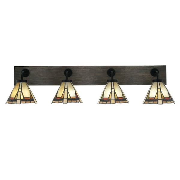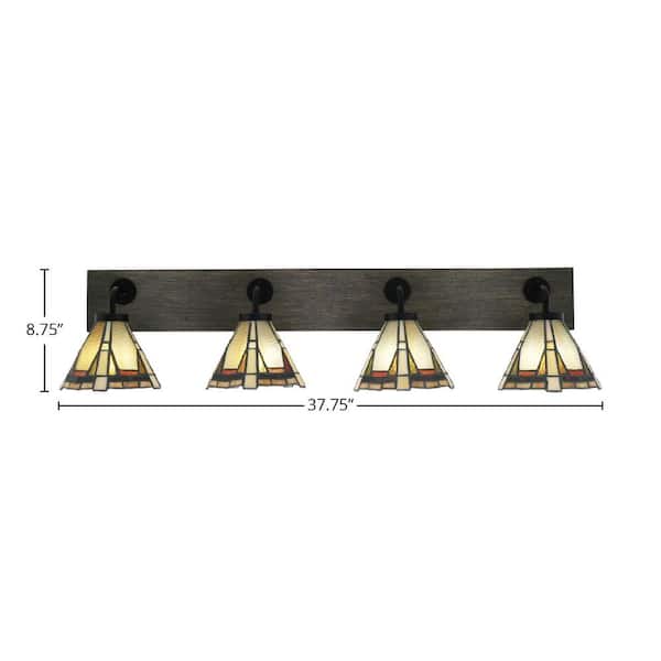 Kirby 37.75 in. 4 Light Black & Painted Wood-look Vanity Light with 7 in. Zion Art Glass Glass Shades No Bulbs Included