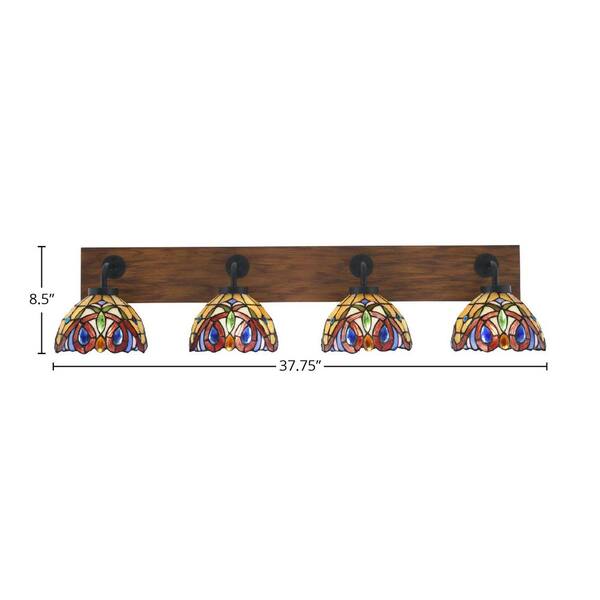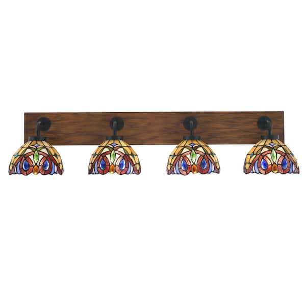 Kirby 37.75 in. 4 Light Black and Painted Wood-look Vanity Light with 7 in. Lynx Art Glass Shades No Bulbs Included