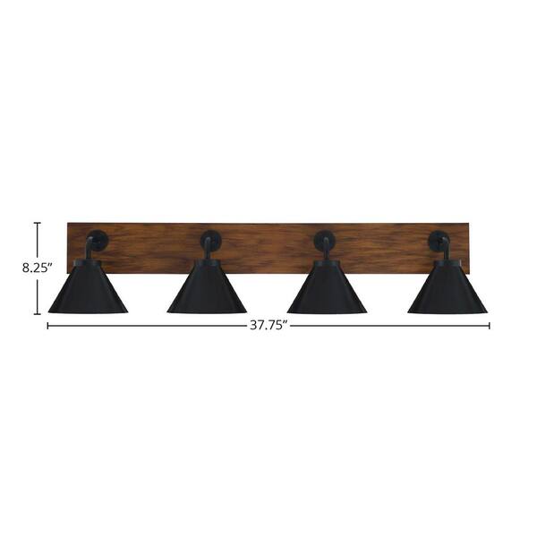 Kirby 37.75 in. 4 Light Black and Painted Wood-look Vanity Light with 7 in. Matte Black Metal Shades No Bulbs Included