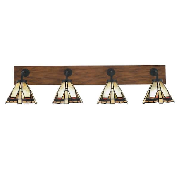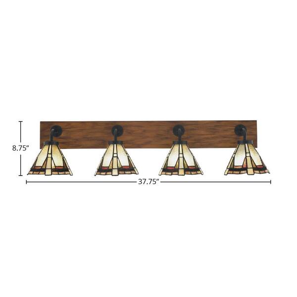 Kirby 37.75 in. 4 Light Black and Painted Wood-look Vanity Light with 7 in. Zion Art Glass Shades No Bulbs Included
