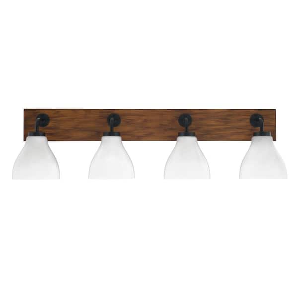 Kirby 37 in. 4 Light Black and Painted Wood-look Vanity Light with 6.25 in. White Marble Glass Shades No Bulbs Included