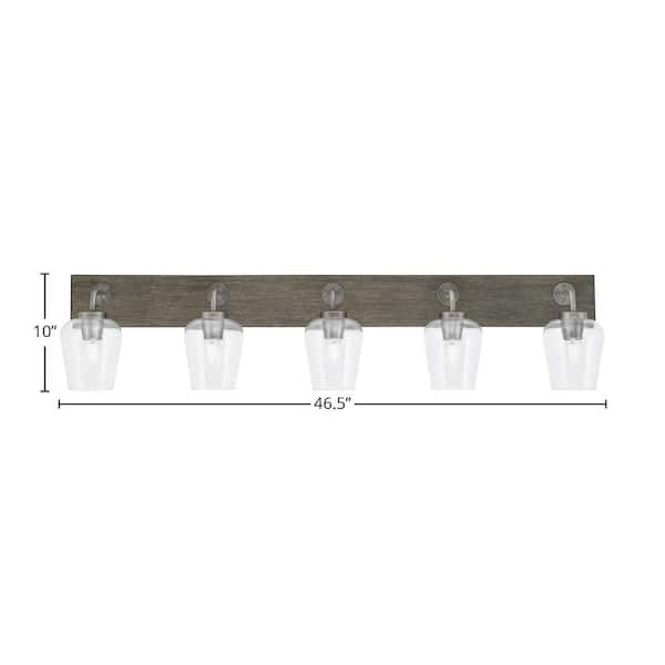 Kirby 46.5 in. 4 Light Graphite & Painted Wood-look Vanity Light with 5 in. Clear Bubble Glass Shades No Bulbs Included