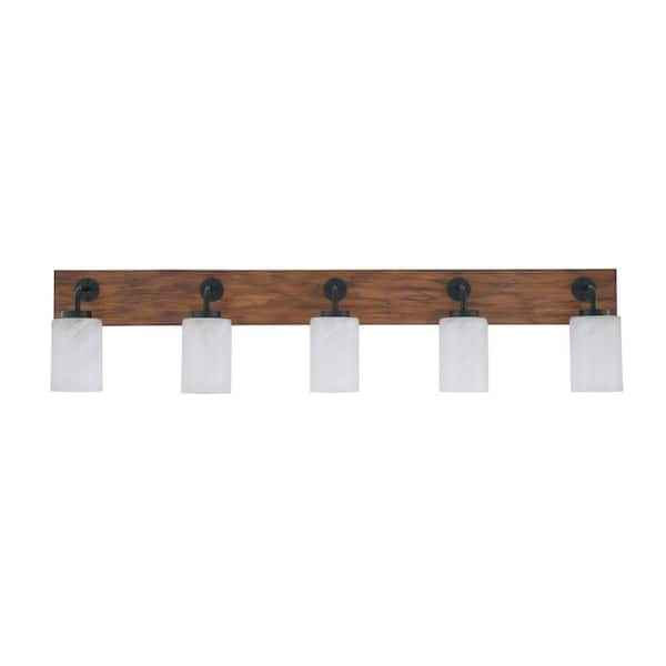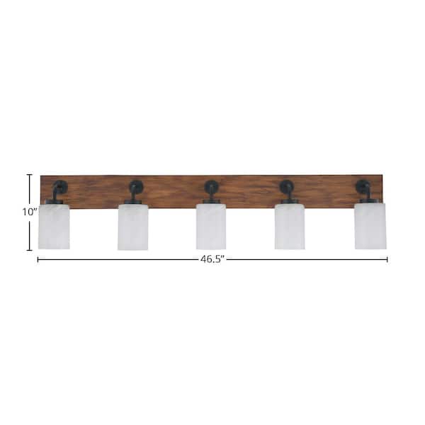 Kirby 46.5 in. 5 Light Black and Painted Wood-look Vanity Light with 4 in. White MarBle Glass Shades No Bulbs Included