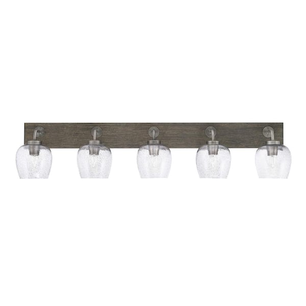 Kirby 46.75 in. 5 Light Graphite & Painted Wood-look Vanity Light with 6 in. Smoke Bubble Glass Shades No Bulbs Included