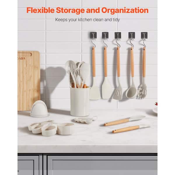Kitchen Cooking Utensils Set, 33 Pieces Silicone Spatula Set with Holder, 428°F Heat Resistant, Wooden Handle, White