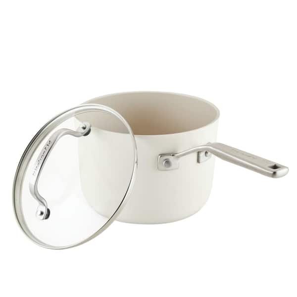 Hard Anodized Ceramic 3 qt. Nonstick Aluminum Sauce Pan, with lid, in Porcelain White