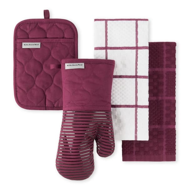 Quilted Cotton Terry Cloth Beet Kitchen Towels, Oven Mitt, Potholder 4-Piece