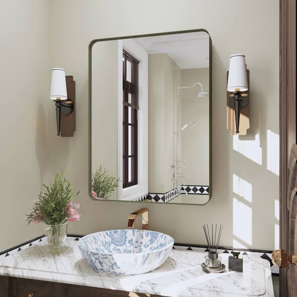 32 in. W x 24 in. H Rectangular Framed Wall Mounted Bathroom Vanity Mirror in Brushed Bronze