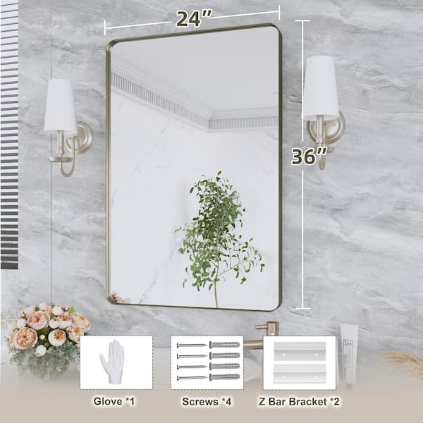 36 in. W x 24 in. H Rectangular Framed Wall Mounted Bathroom Vanity Mirror in Brushed Bronze