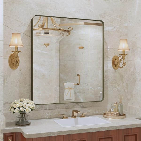 36 in. W x 32 in. H Rectangular Framed Wall Mounted Bathroom Vanity Mirror in Brushed Bronze
